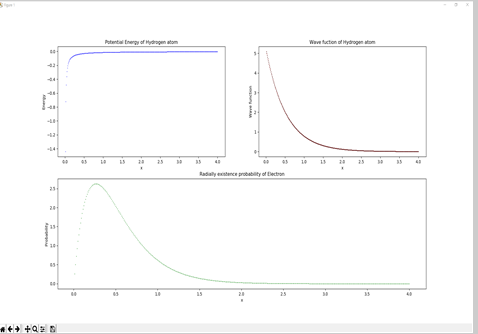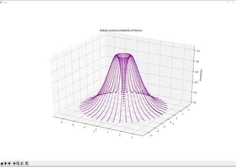 Wave function of the Hydrogen atom for the ground state and Radially existence probability of Electron : We can check the actual 1s wave function through the simulation result. Also, the probability density function is expressed in three dimensions. It can be confirmed by comparing the probability of existence with the data expressed in electron clouds.